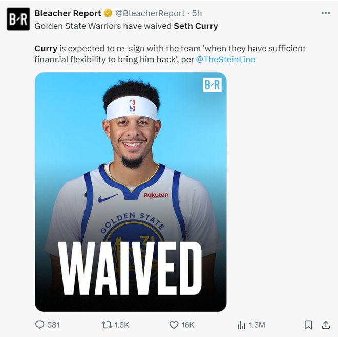 随后NBA记者马克-斯坦恩跟踪报道,正如我此前说的那样,勇士队裁掉赛思后计划在下个月当球队拥有足够薪金空间时再将他重新签回来。